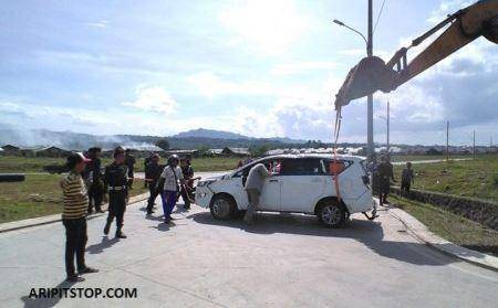 Sungguh hari yang menyedihkan buat ibu satu ini, mobil mahal miliknya yang baru 4 hari datang dari dealer sudah rusak parah. Mobil ini bahkan velg rodanya saja masih ada tertempel plastik pembungkus, jok mulus yang masih dibungkus plastik dari pabrik akhirnya ikut rusak oleh pecahan kaca.